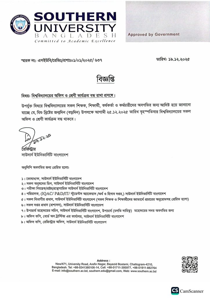 বন্ধের বিজ্ঞপ্তি (বড়দিন)