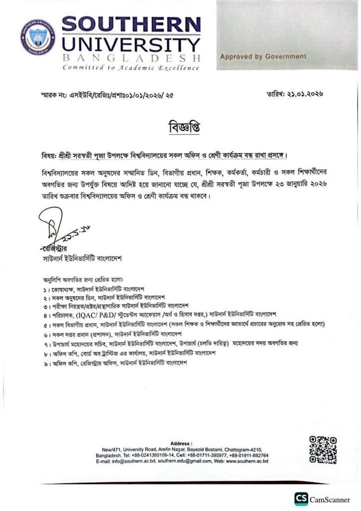 শ্রী শ্রী সরস্বতী পুজার বন্ধের নোটিশ