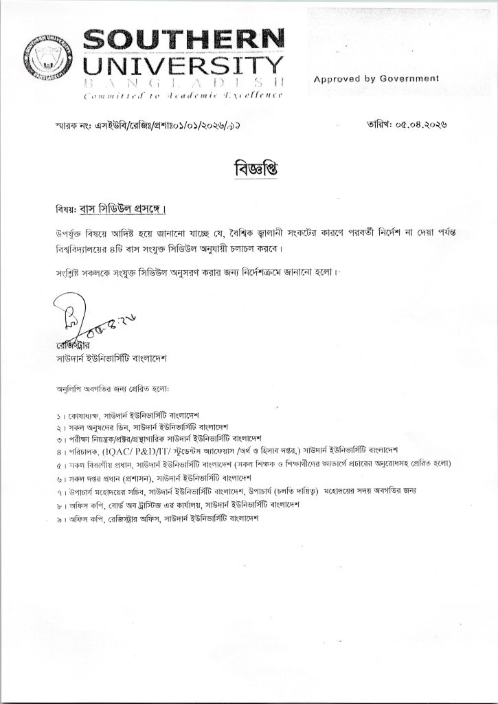 বাস সিডিউল প্রসঙ্গে ।