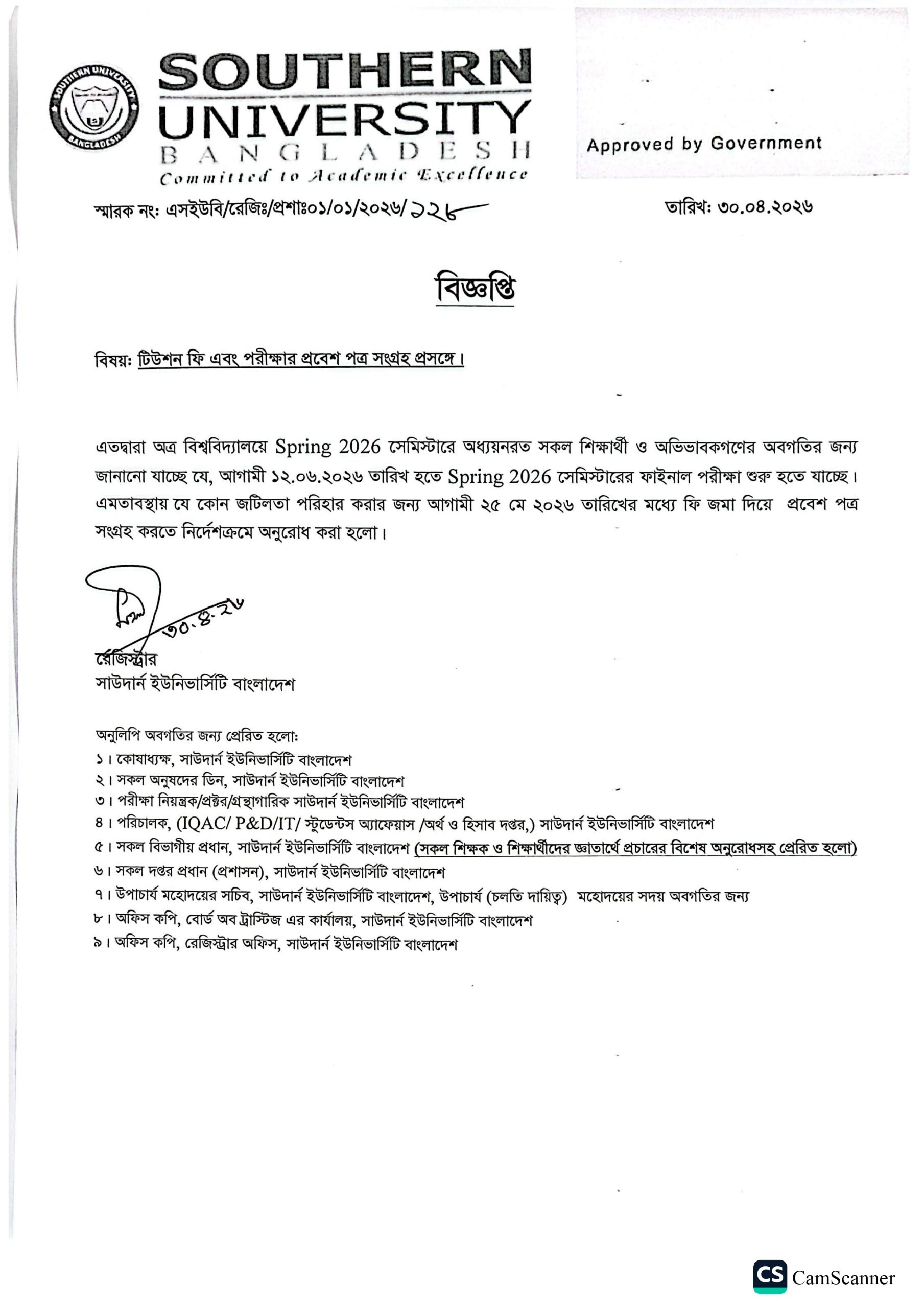 টিউশন ফি এবং পরীক্ষার প্রবেশ পত্র সংগ্রহ প্রসঙ্গে।
